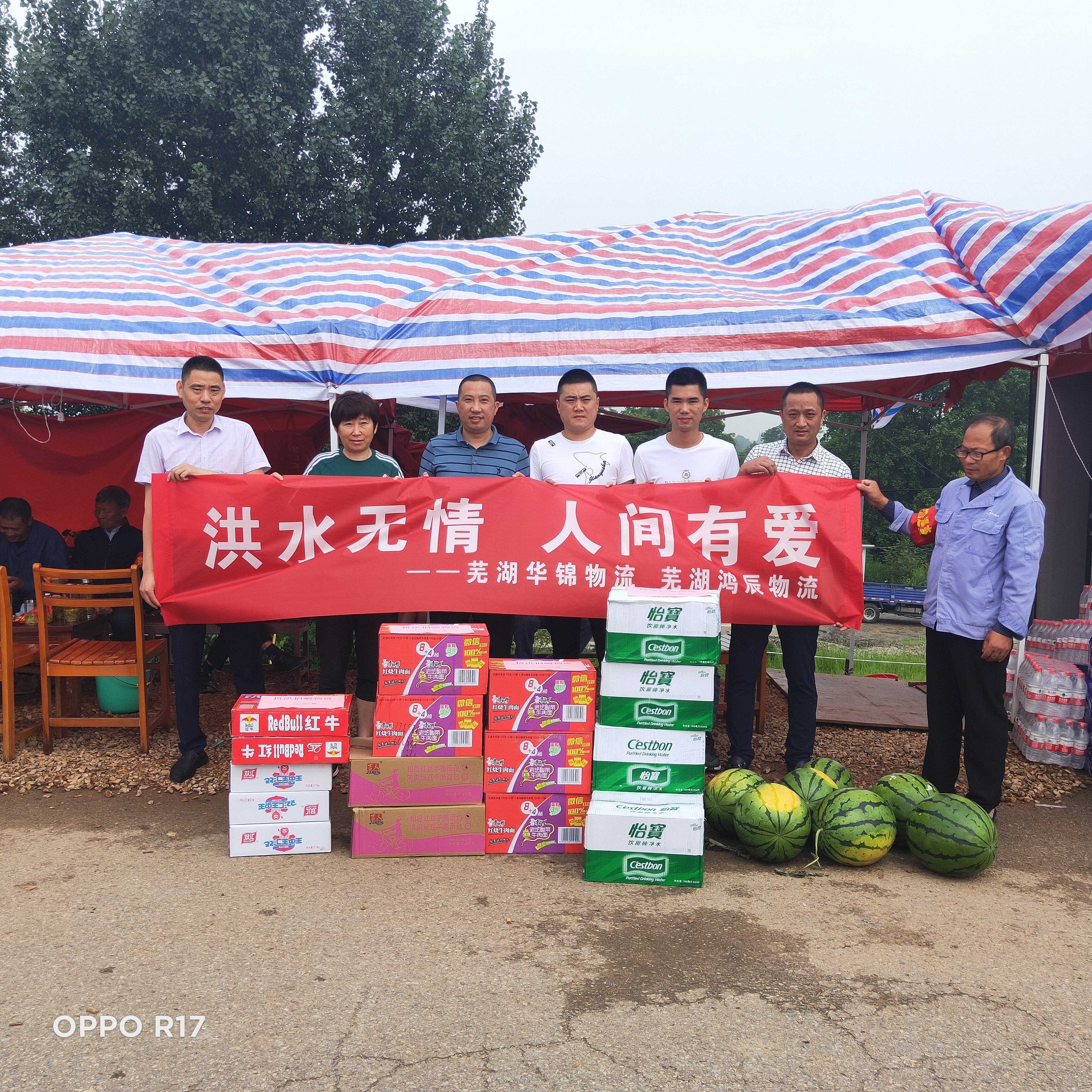 公司叶章红董事长委托张灿总经理代表芜湖鸿辰物流 芜湖华锦物流 慰问防洪抗险一线的工作人员