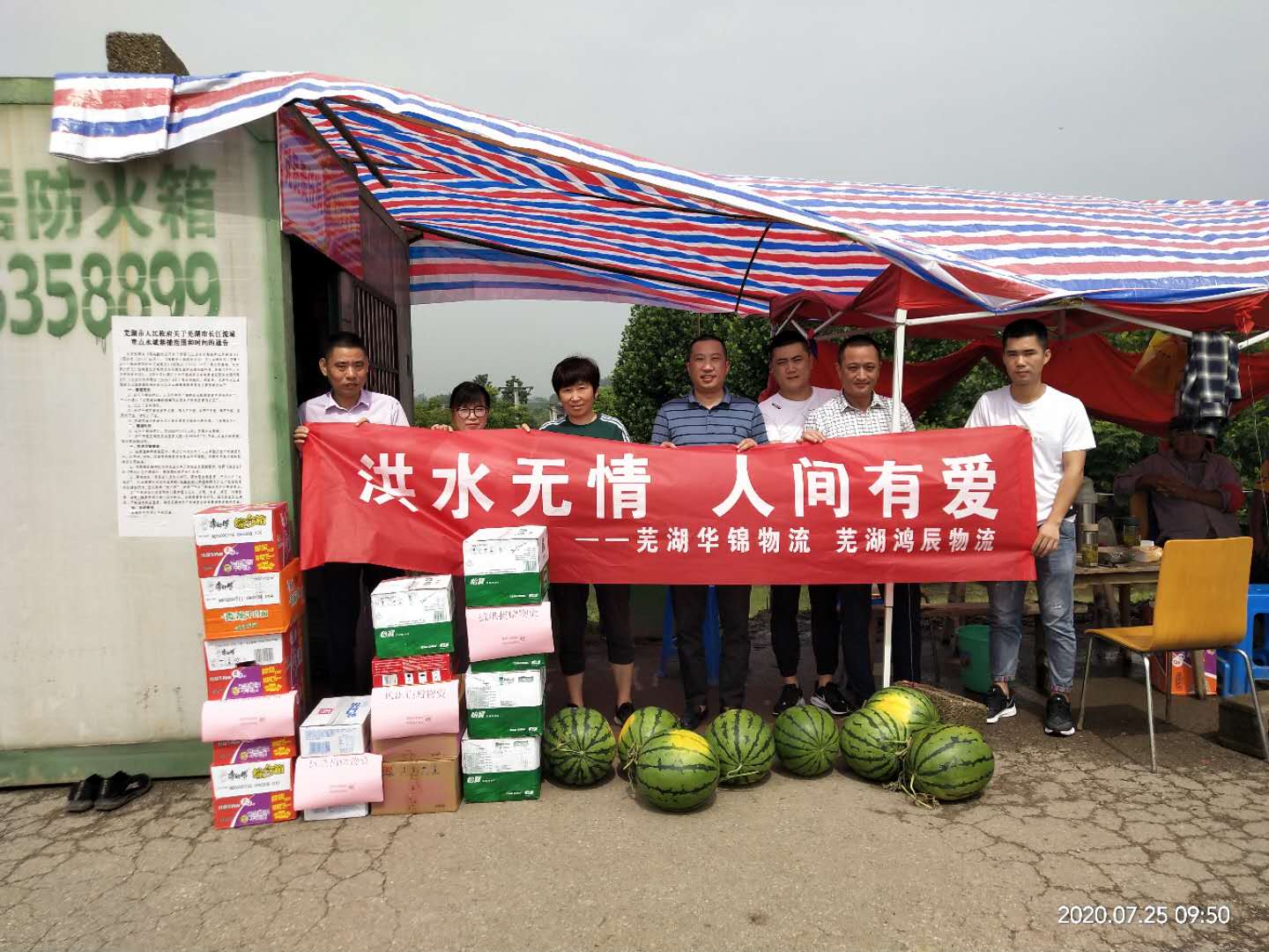 公司叶章红董事长委托张灿总经理代表芜湖鸿辰物流 芜湖华锦物流 慰问防洪抗险一线的工作人员